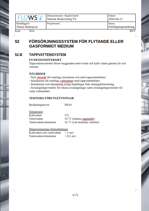 Rambeskrivning / Teknisk Beskrivning / Förfrågningsunderlag